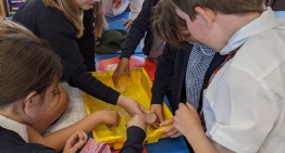 We made catapults out of lolly sticks, white tack, rubber bands and bottle lids. We were investigating if more sticks made our catapult launch higher.
