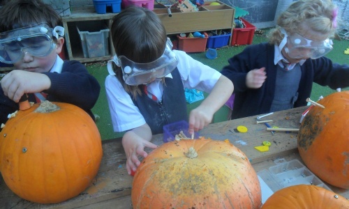 Indie- We have been using tools to screw and hammer into the pumpkins.