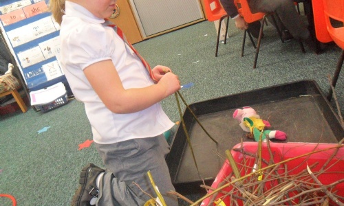 Arthur has loved our Science this week, which has been to build homes for the three little pigs using straw, sticks and bricks then using the Big Bad Wolf hairdrier to see which one will be puffed down.