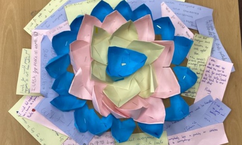 During today's Festival of Light, we created our own krathong, a 'floating basket', that is used in Buddhism to celebrate and thank the river gods. Our homemade krathong was made by the whole class and includes own wishes for the world.  We also made lanterns that are floated up to the sky during this festival.